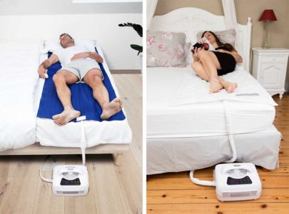 - plus économique et plus écologique qu’une climatisation de chambre : aucun rejet de gaz à effet de serre et nettement moins énergivore, la climatisation de lit élimine aussi tout risque de problème ORL lié à l’exposition prolongée à la climatisation ou à un ventilateur